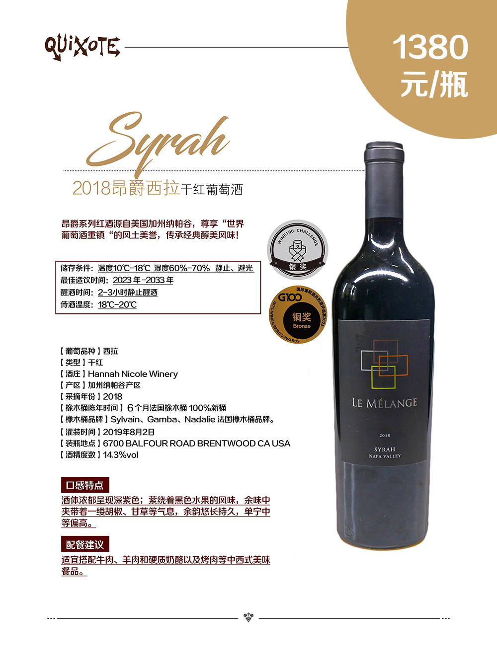 昂爵西拉干红2018